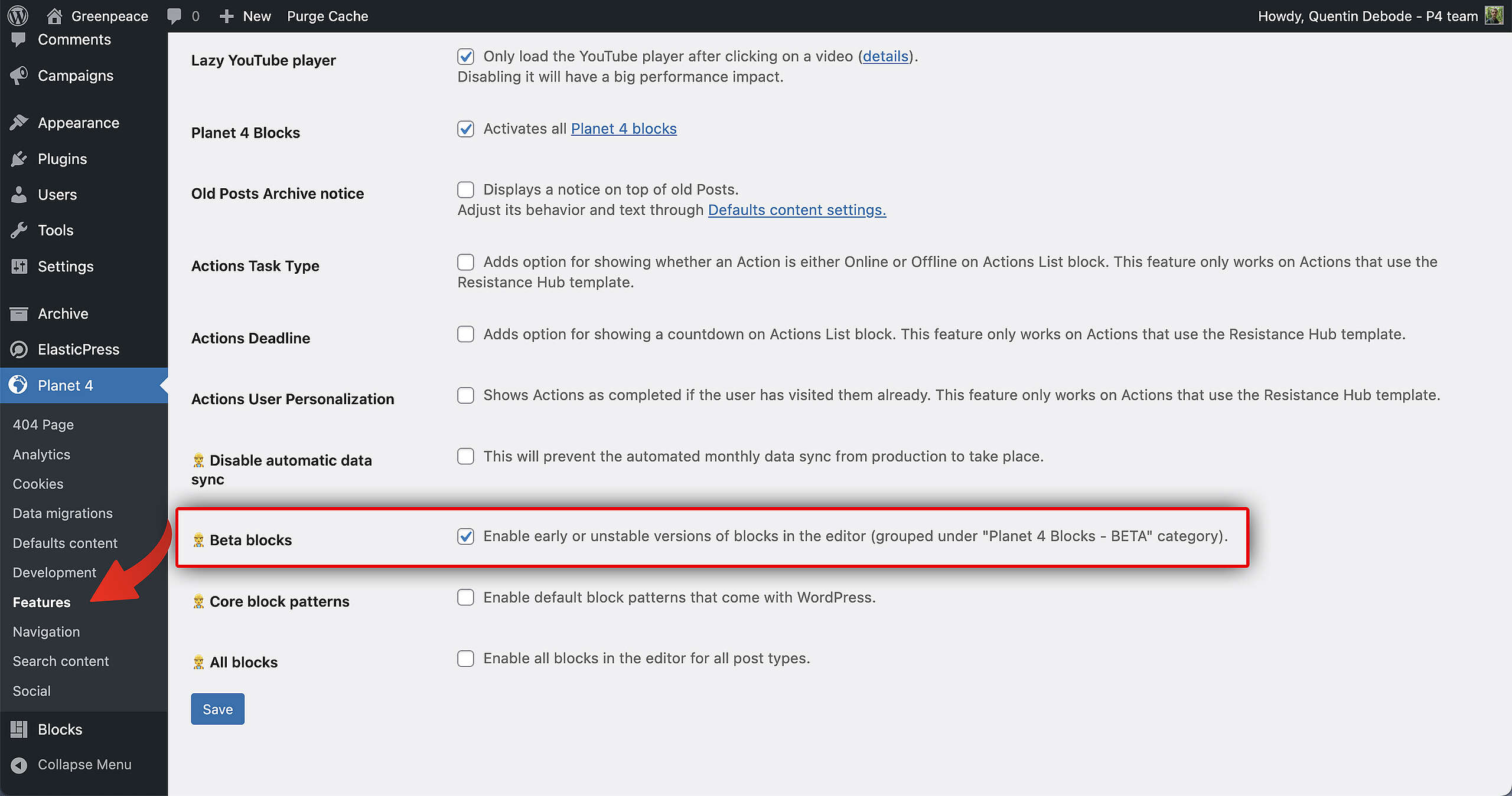 In case you want to try it out, you’ll have to enable “Beta Blocks” in your P4 settings of your Dev site. You can do this at Dashboard > Planet 4 > Features.